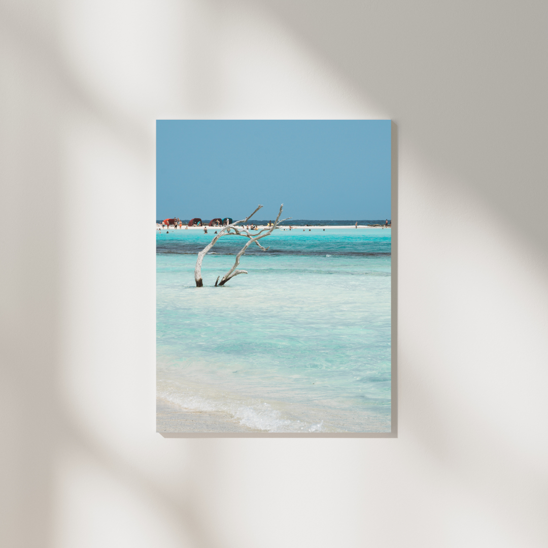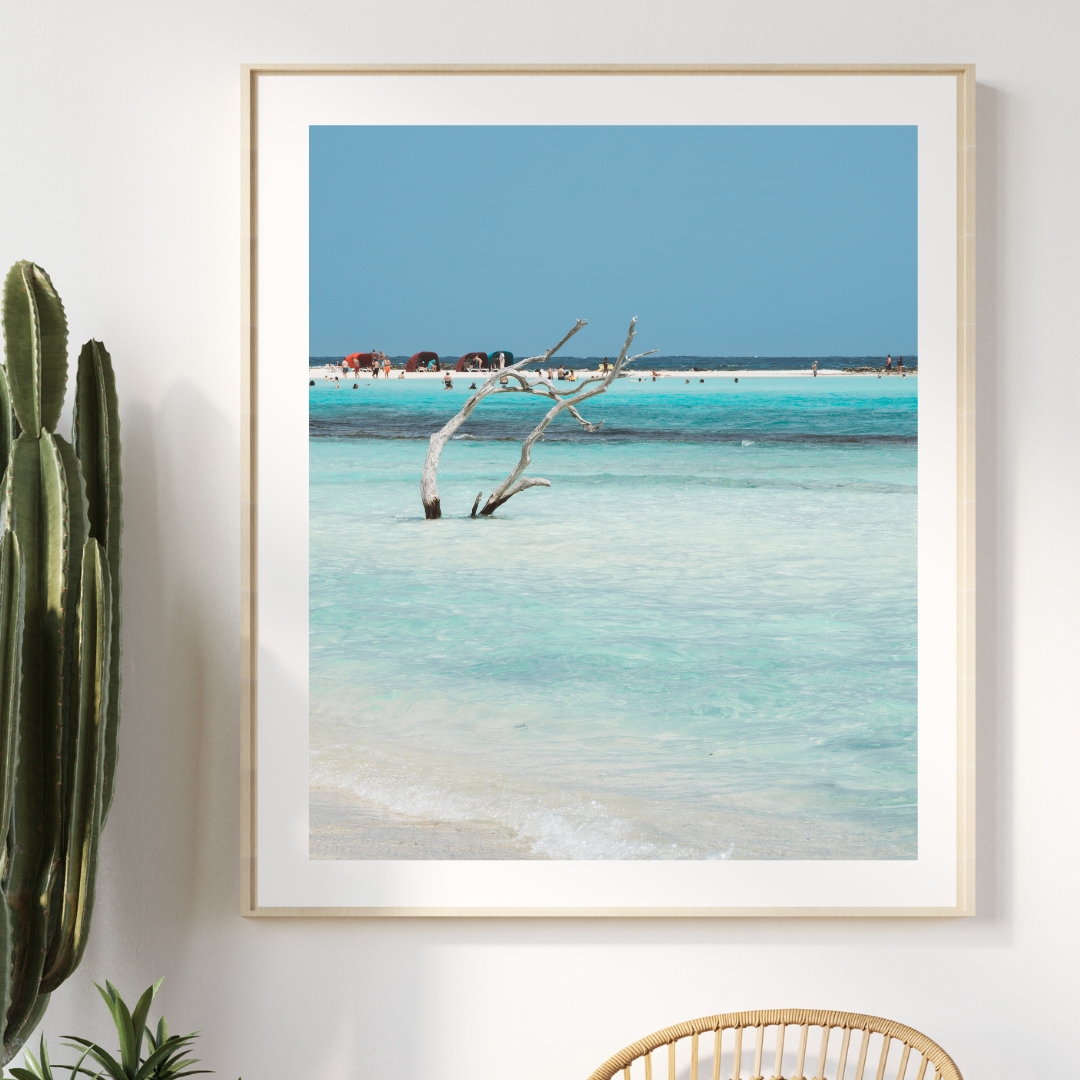 Jeder, der schon einmal am weltberühmten Baby Beach auf Aruba war, kennt die charakteristischen Stücke Treibholz, die die ohnehin schon unglaubliche Kulisse des türkisfarbenen Karibikstrandes zu etwas ganz Besonderem machen. Was läge also näher als dieses wunderbare Motiv mit der Kamera festzuhalten, so dass es nicht nur unsere Erinnerung schmücken kann, sondern auch unser