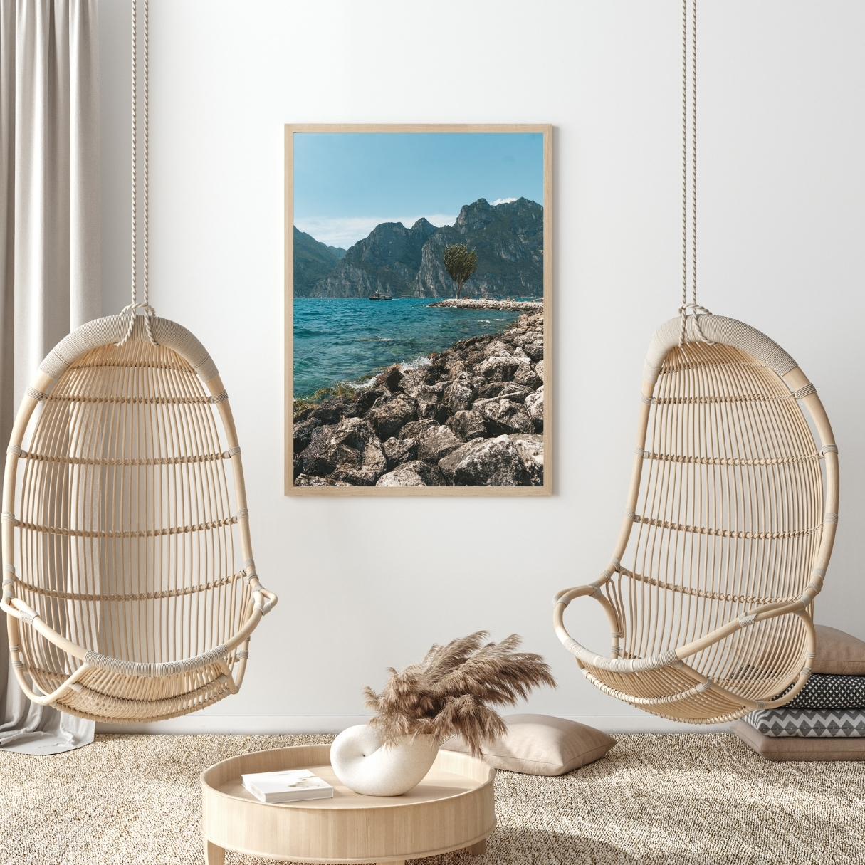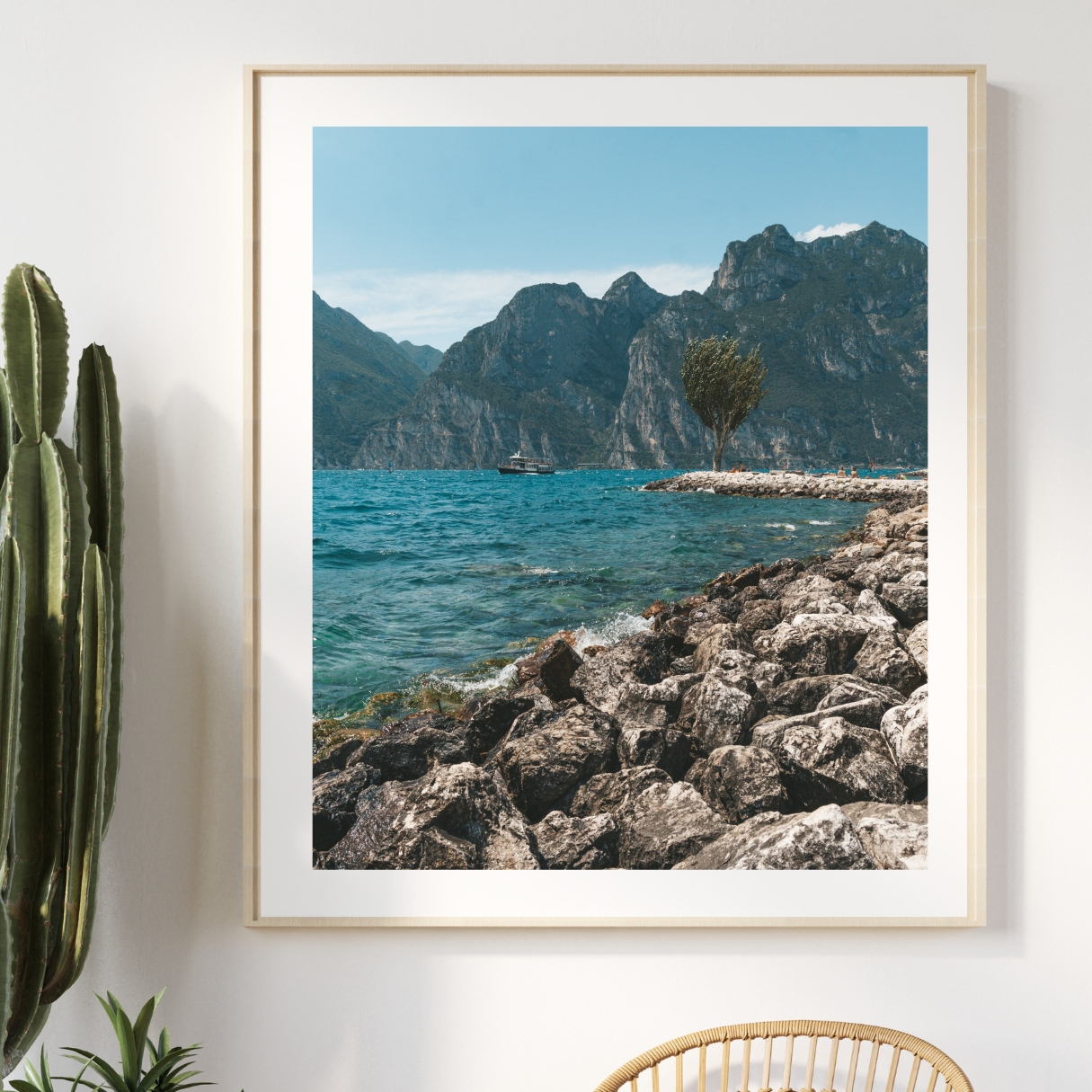 Das Poster bringt die markante Atmosphäre des nördlichen Gardasees in dein Zuhause. Als Wandbild eignet sich die Fotografie besonders für moderne Wohnräume, Büros oder minimalistische Bilderwände.