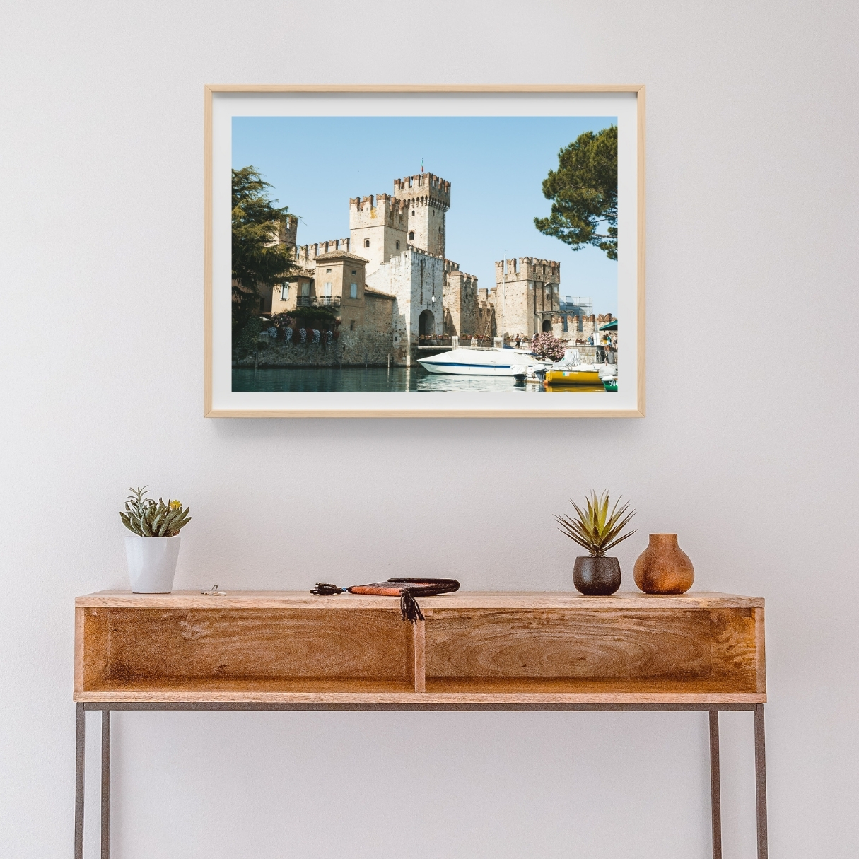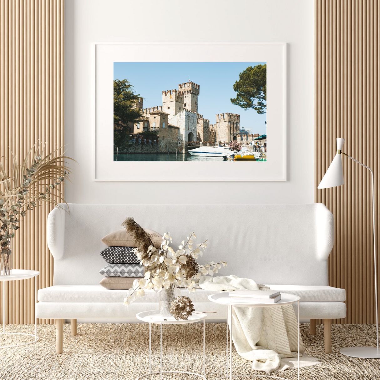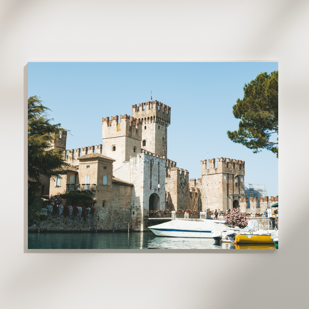Das Poster bringt historische Präsenz und mediterrane Atmosphäre in den Raum. Besonders in klaren Interieurs oder als Teil einer lebendigen Bilderwand entfaltet das Motiv seine Wirkung. Ein Reiseposter für alle, die sich für Geschichte und ikonische Orte am Gardasee begeistern.