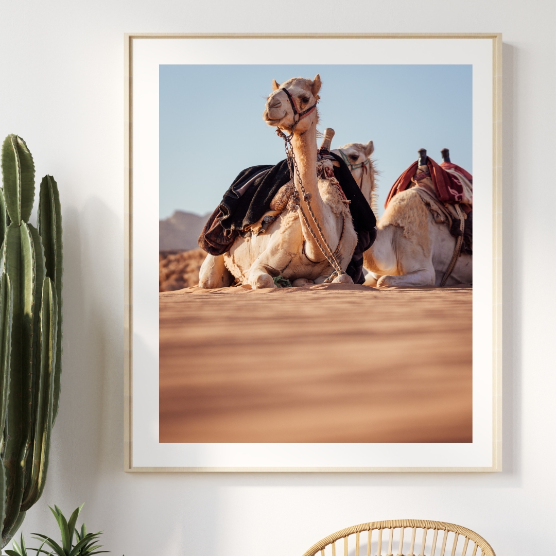 Falls du Kamel-Fan bist und die Ästhetik sandiger, in warmes Licht getauchter Wüstenlandschaften liebst, ist dieses Poster ein Muss für dein Zuhause <3