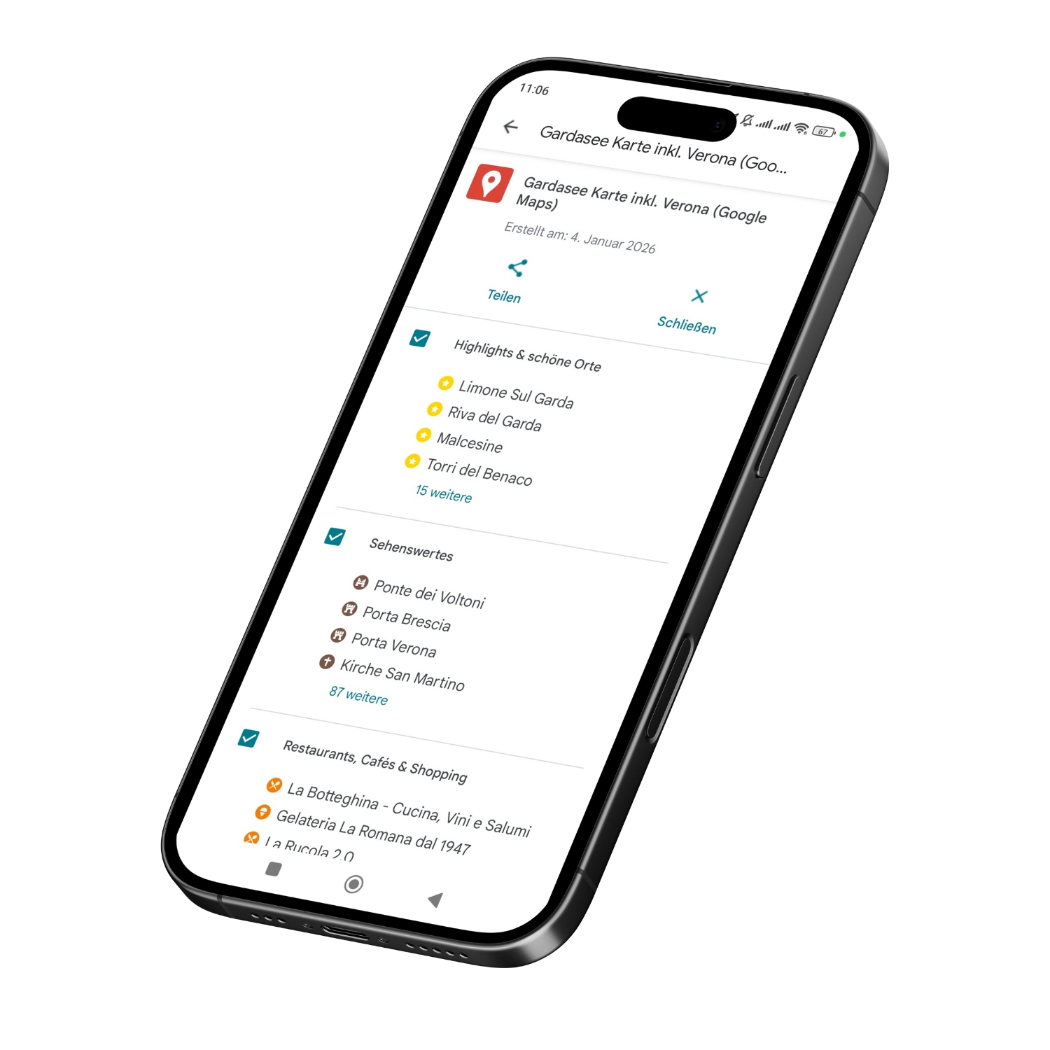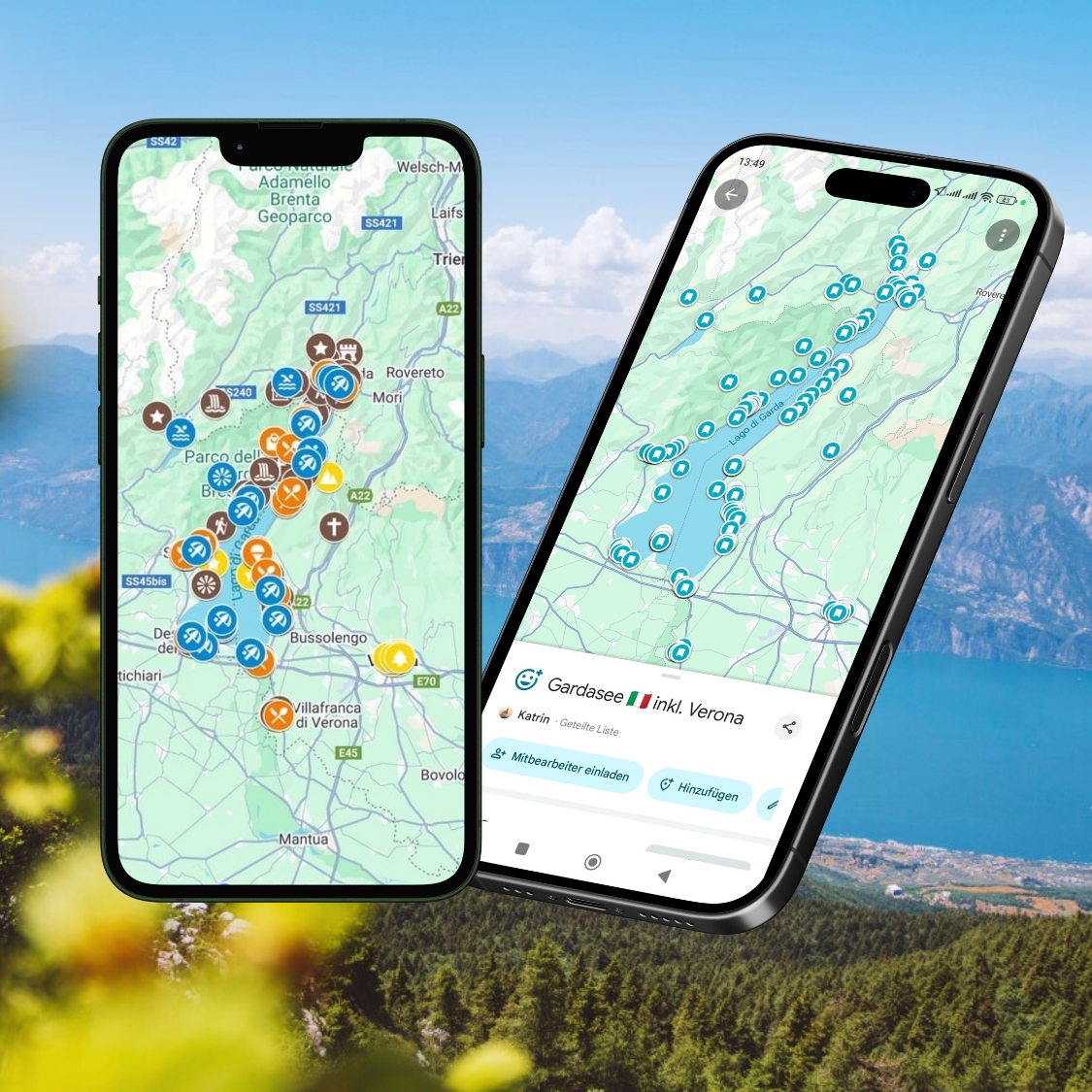 Spar dir die stunden- oder sogar tagelange Recherche und hol dir alle interessanten Spots am Gardasee zusammengefasst als Google Maps Karte + Google Maps Liste. Ideal für die Urlaubsplanung und zur Navigation vor Ort. Die Karten und Listen werden regelmäßig aktualisiert, lebenslange kostenlose Updates sind also inklusive.