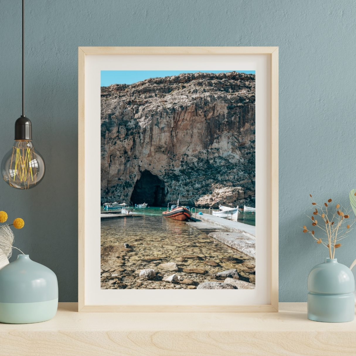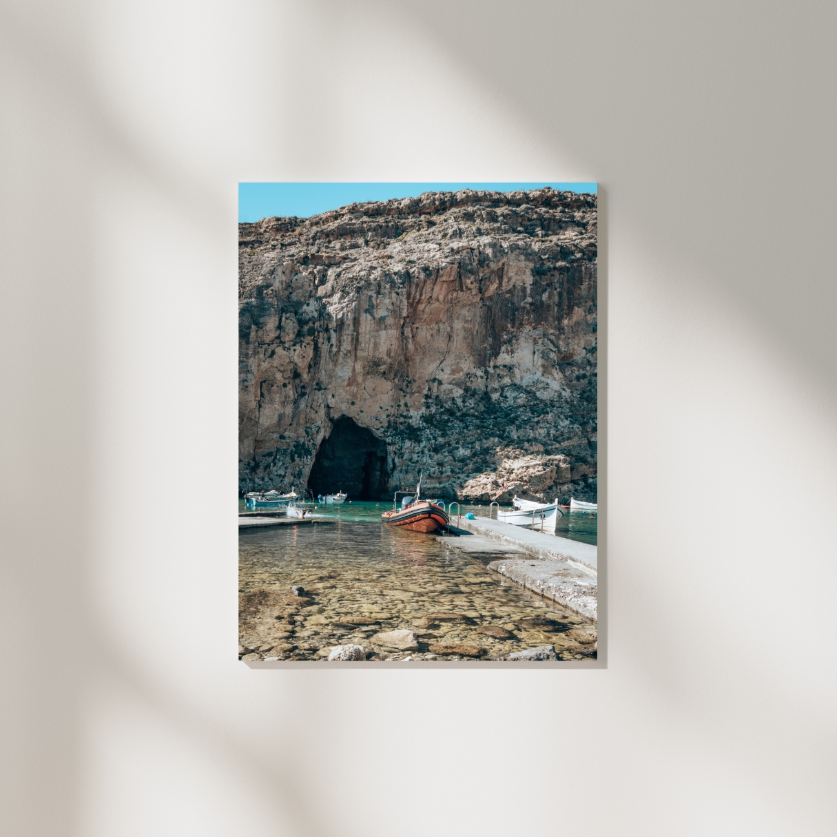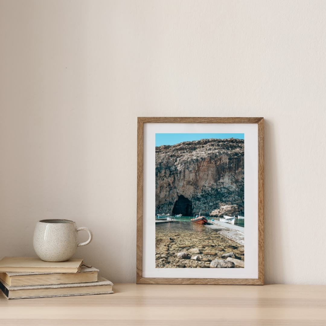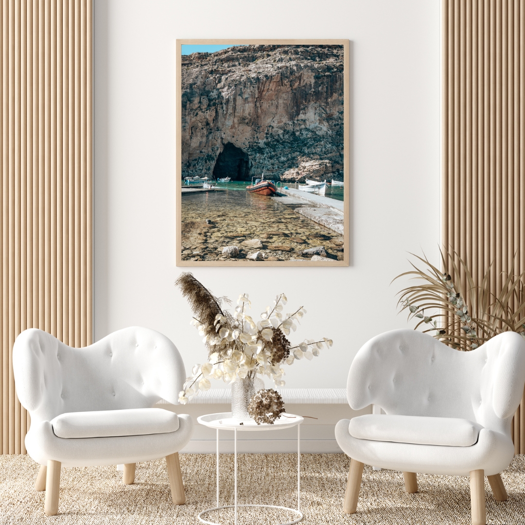 Das Bild lebt von der Mischung aus Ruhe und rauer Landschaft. Es bringt eine klare, leicht dramatische Stimmung in den Raum und passt gut zu minimalistischen Einrichtungen. Wenn du Orte magst, die nicht ganz offensichtlich sind, holst du dir mit diesem Poster ein sehr besonderes Stück Gozo nach Hause.