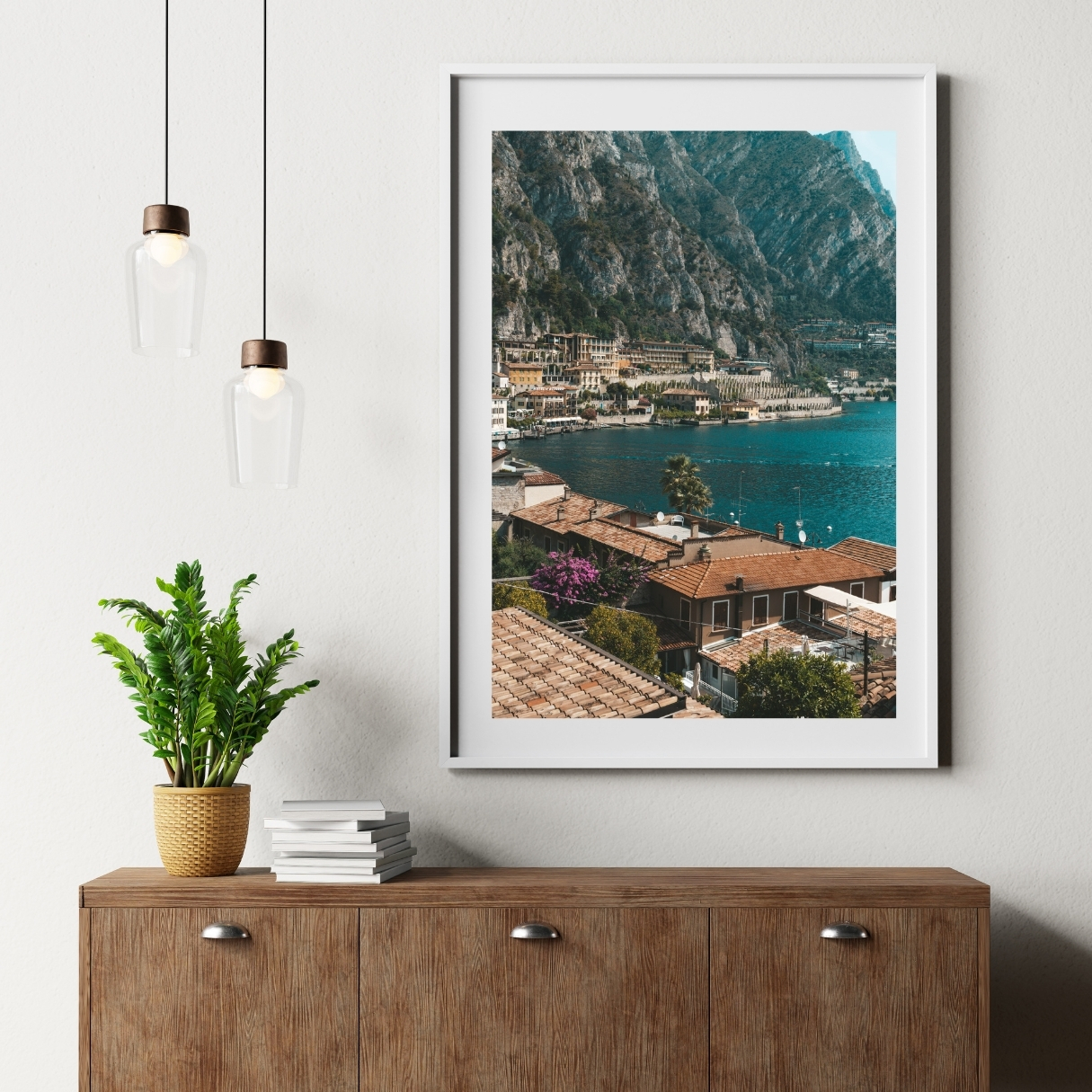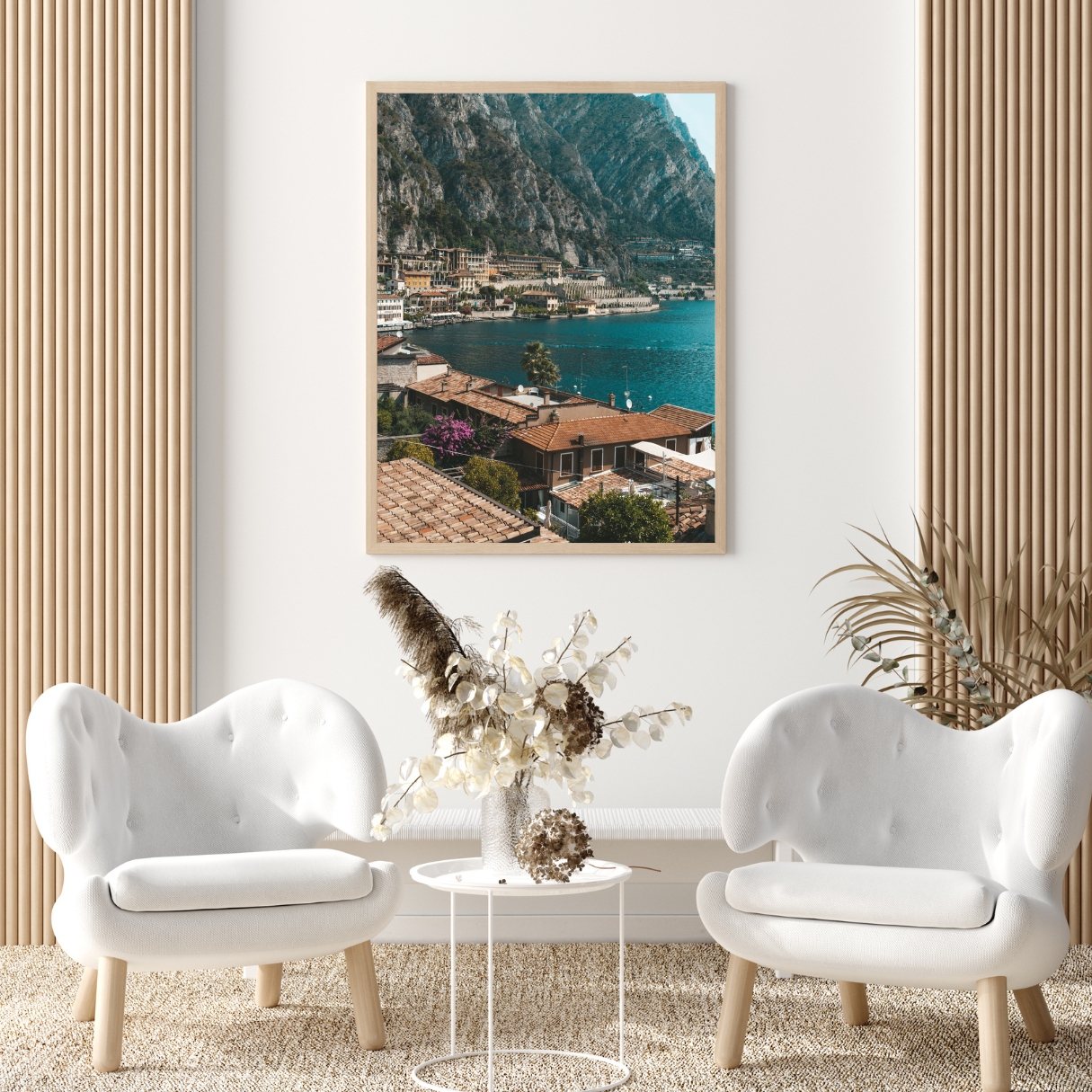 Das Bild wirkt ruhig und charakterstark und bringt eine leicht nostalgische Stimmung in den Raum. Besonders geeignet für Interieurs, die klare Motive und etwas Tiefe vertragen. Eine Fotografie, die das alte Limone sul Garda authentisch einfängt und in deinem Zuhause gekonnt einen Akzent abseits der typischen Postkartenmotive setzt.