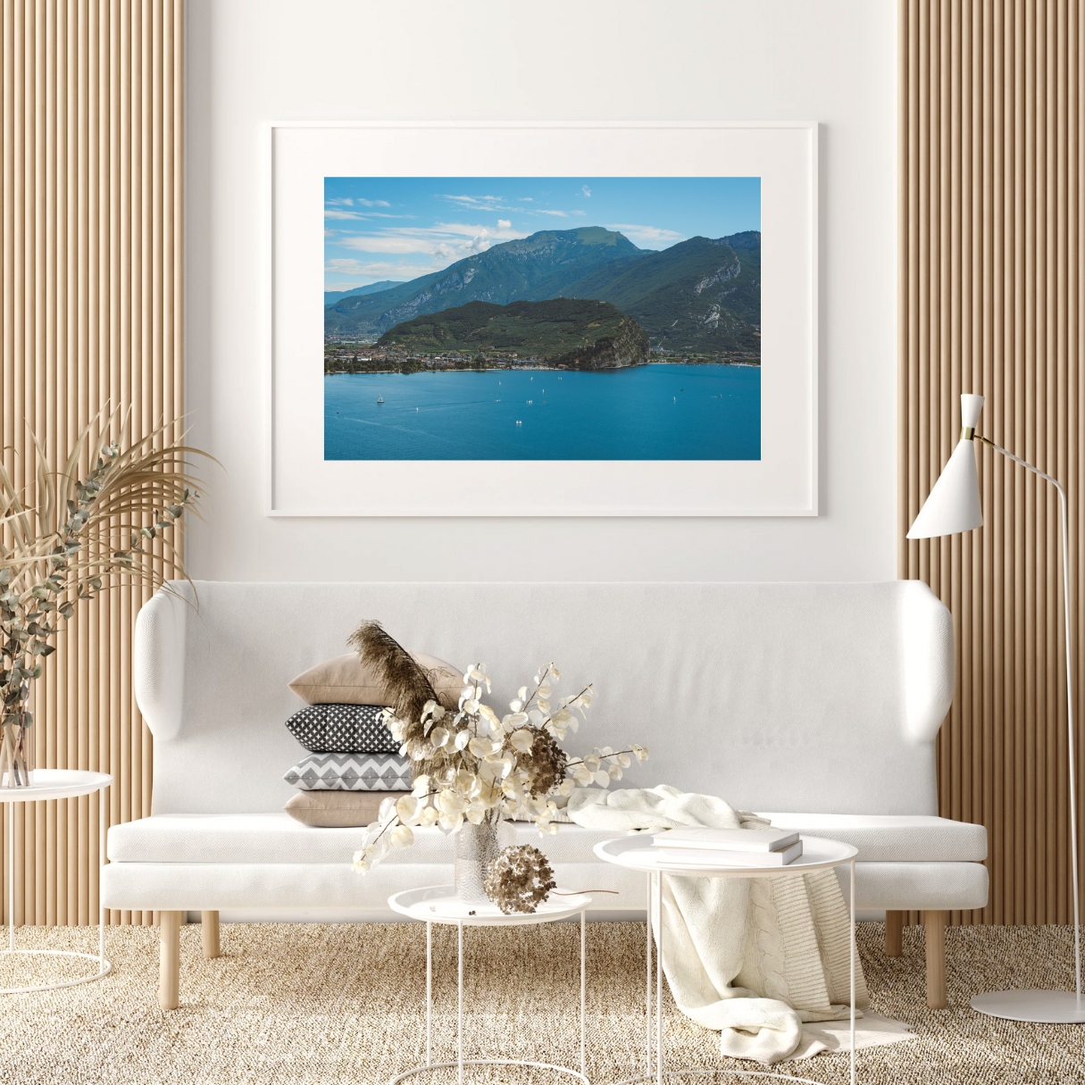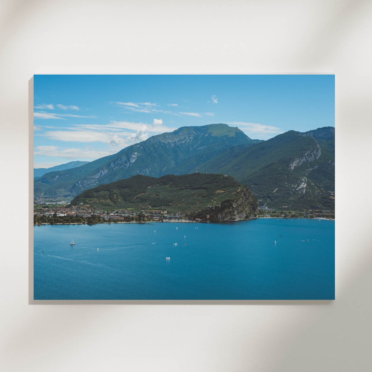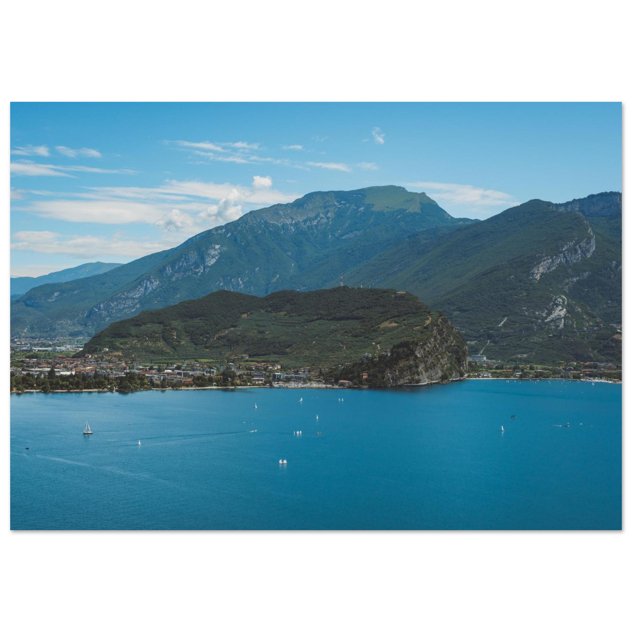 Das Bild bringt eine alpine, natürliche Stimmung in den Raum. Kühle Farben und starke Linien passen besonders gut zu reduzierten Interieurs. Ein Poster für alle, die den Gardasee von seiner kraftvollen Seite mögen und jenseits der klassischen Motive schätzen.