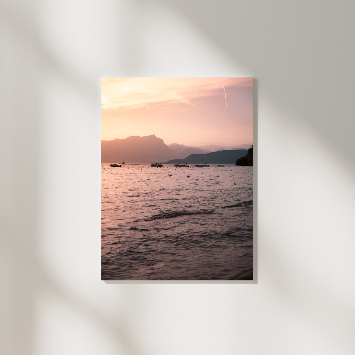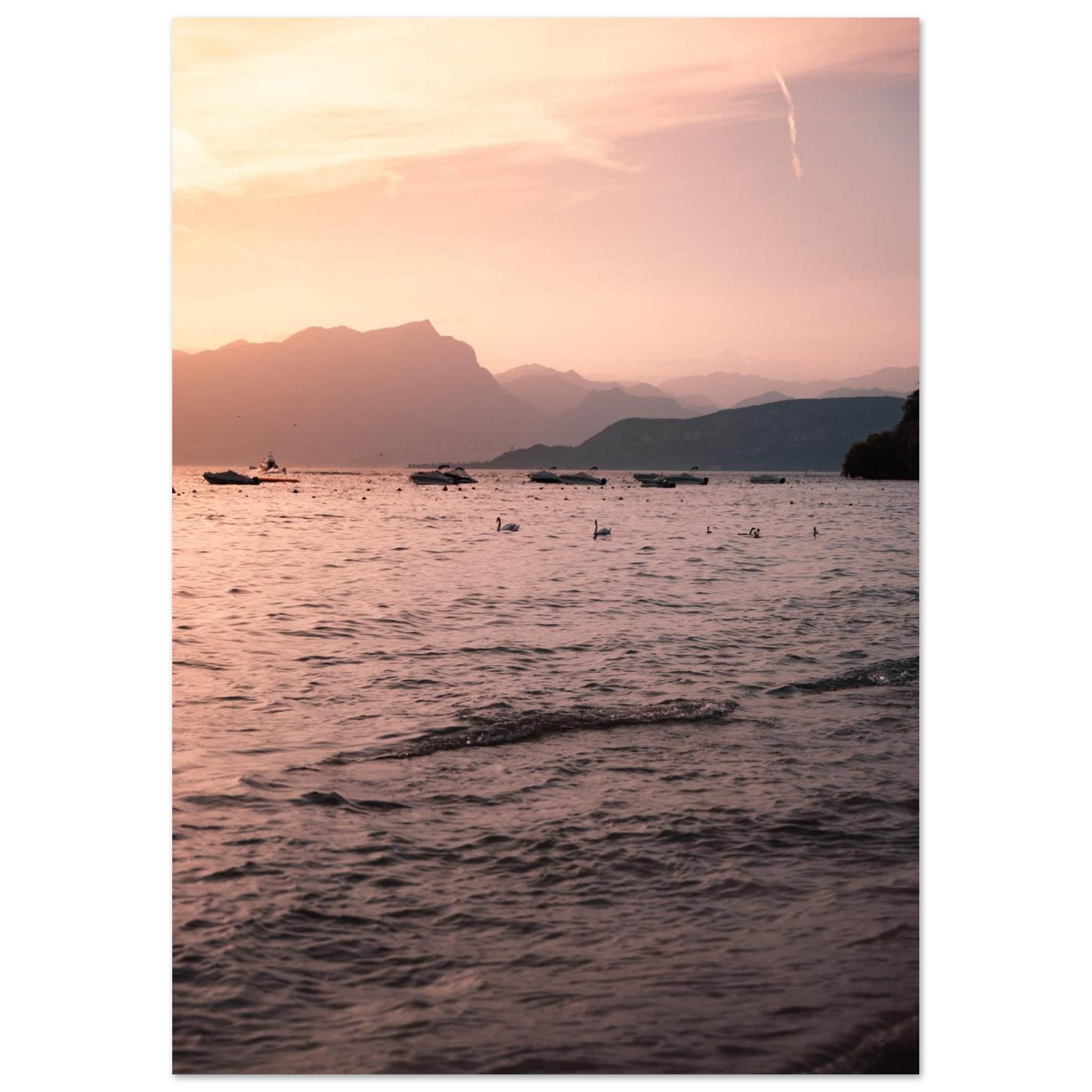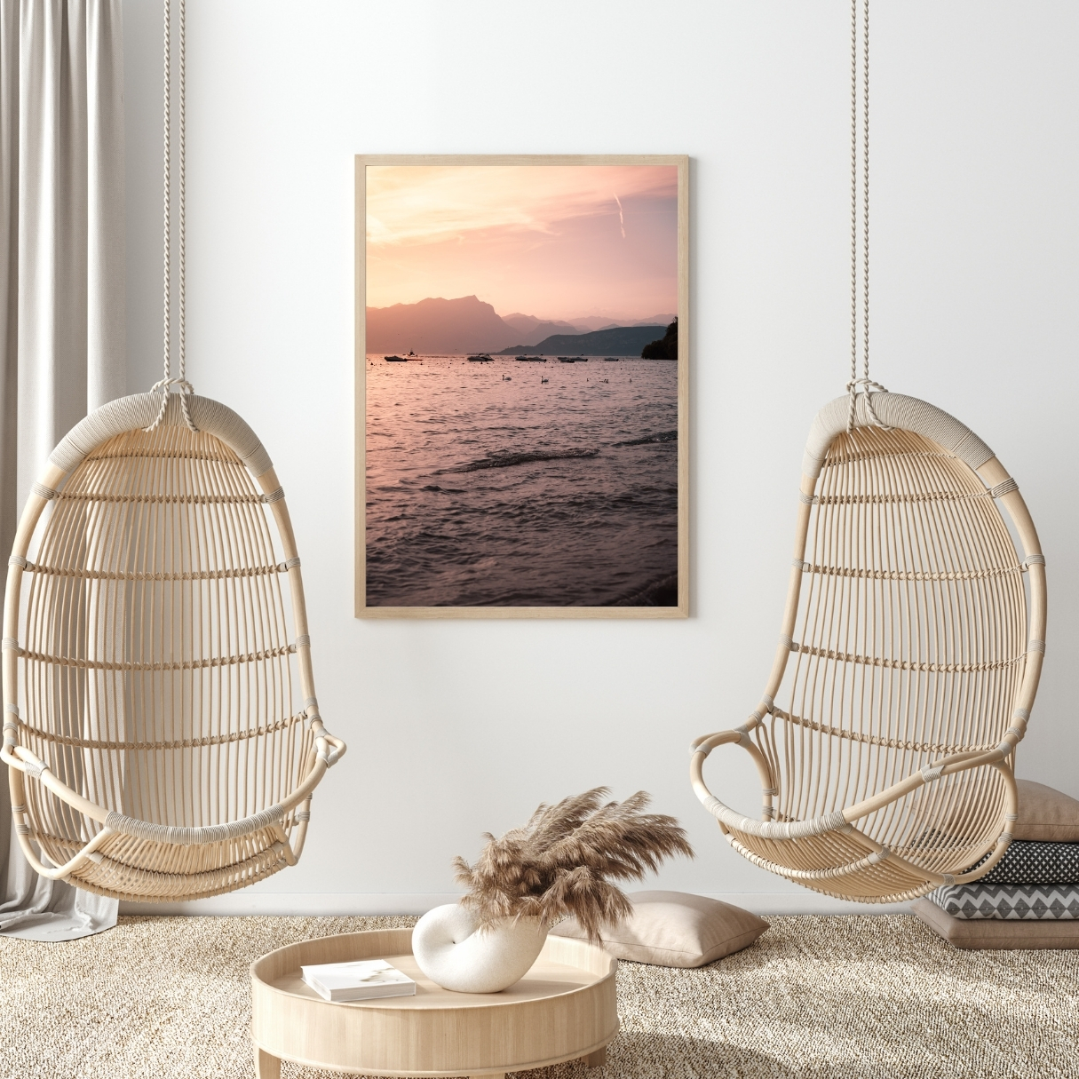 Dieses Sonnenuntergangs-Poster bringt Ruhe in den Raum und lädt dich ein, deine Gedanken schweifen zu lassen. Es eignet sich besonders für Wohnzimmer oder Schlafzimmer und ergänzt Bilderwände, die mit starken Farbkontrasten und klaren Flächen arbeiten. Ein Reiseposter für alle, die sich jeden Abend an den Gardasee träumen möchten <3