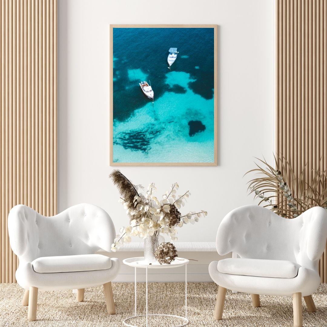 Dieses Motiv überzeugt durch seine Einfachheit. Klare Linien, kühle Farben und viel offene Fläche machen das Bild ideal für minimalistische und moderne Räume. Ein Poster für alle, die das Meer in all seinen Kontrasten lieben und sich ein Stückchen karibisches Lebensgefühl nach Hause holen wollen.