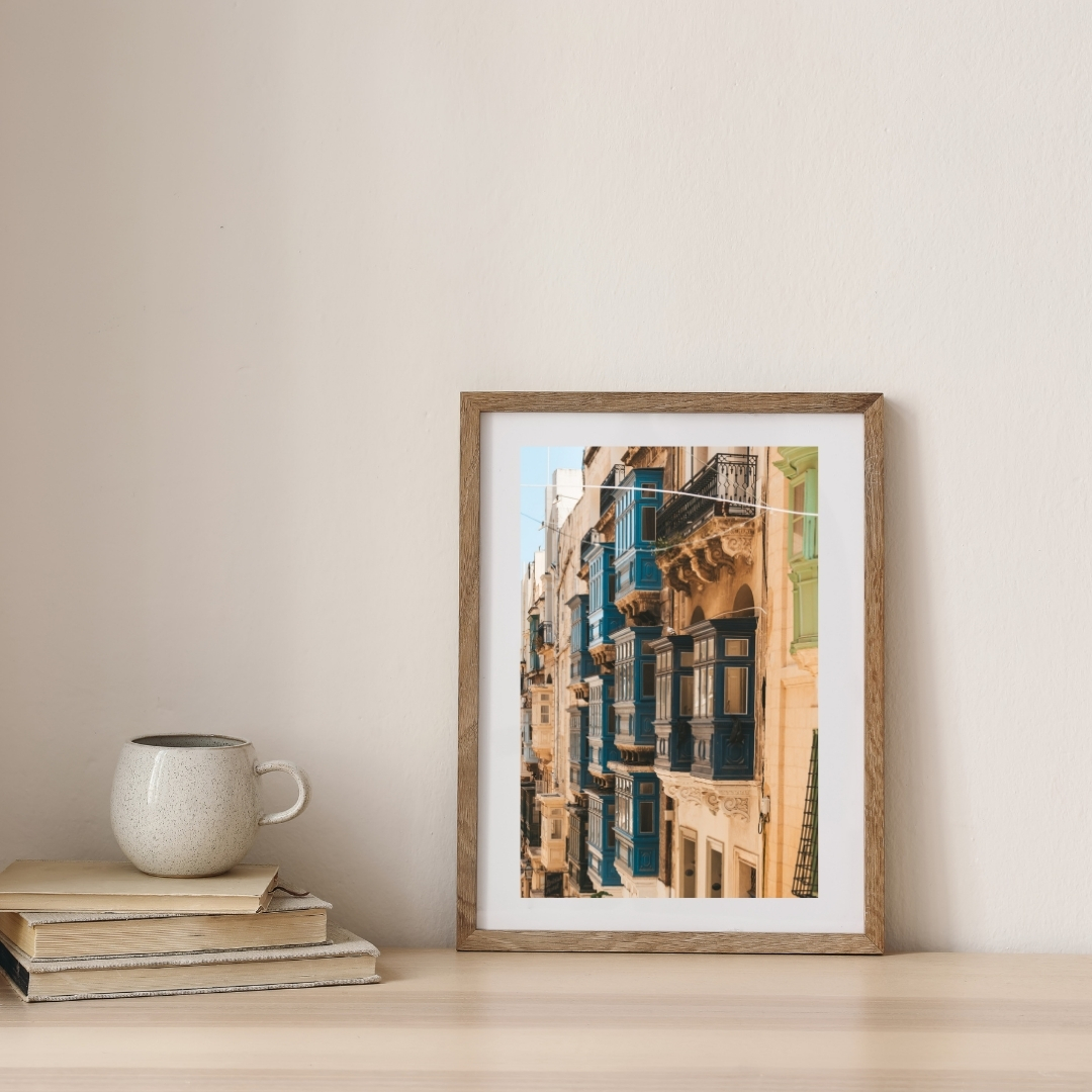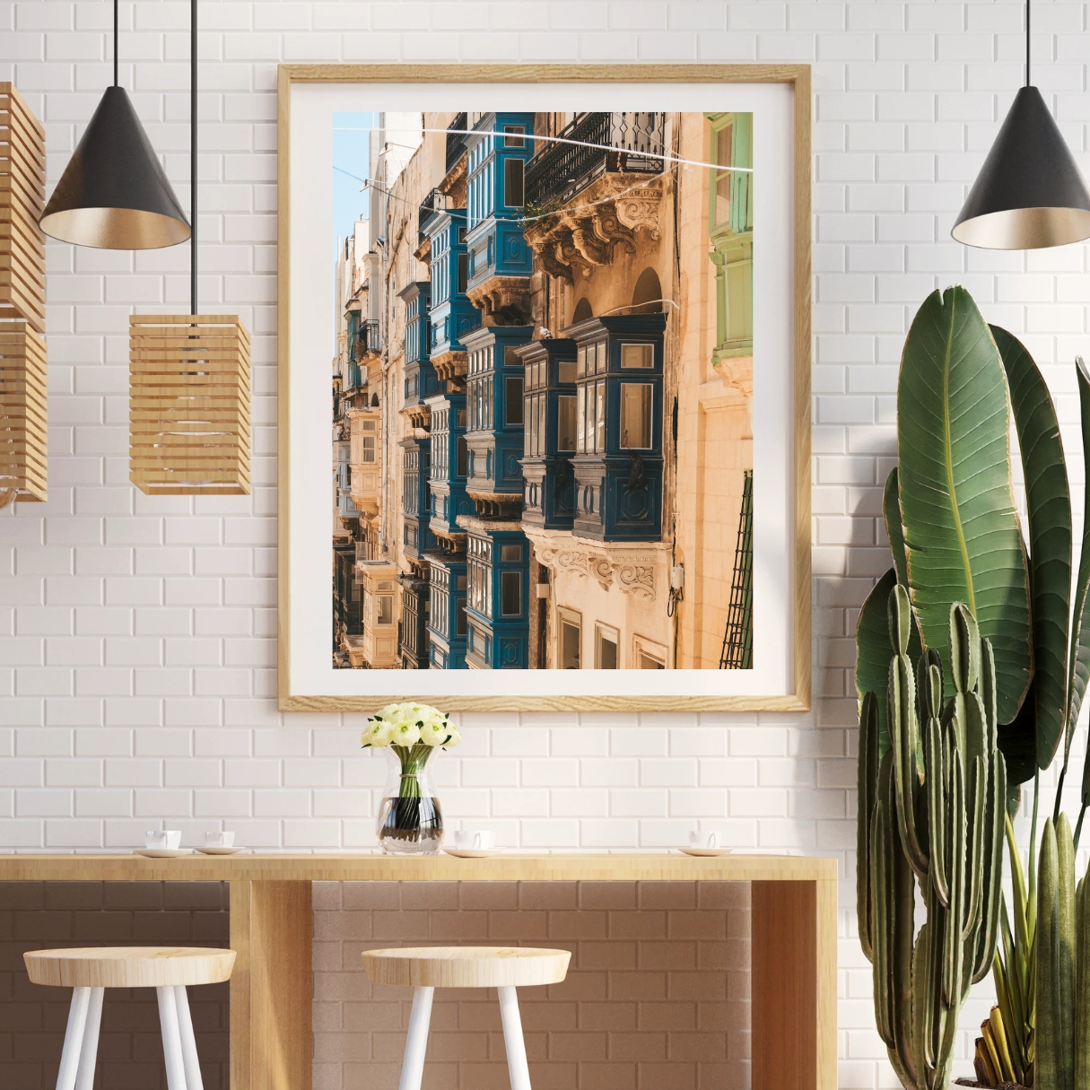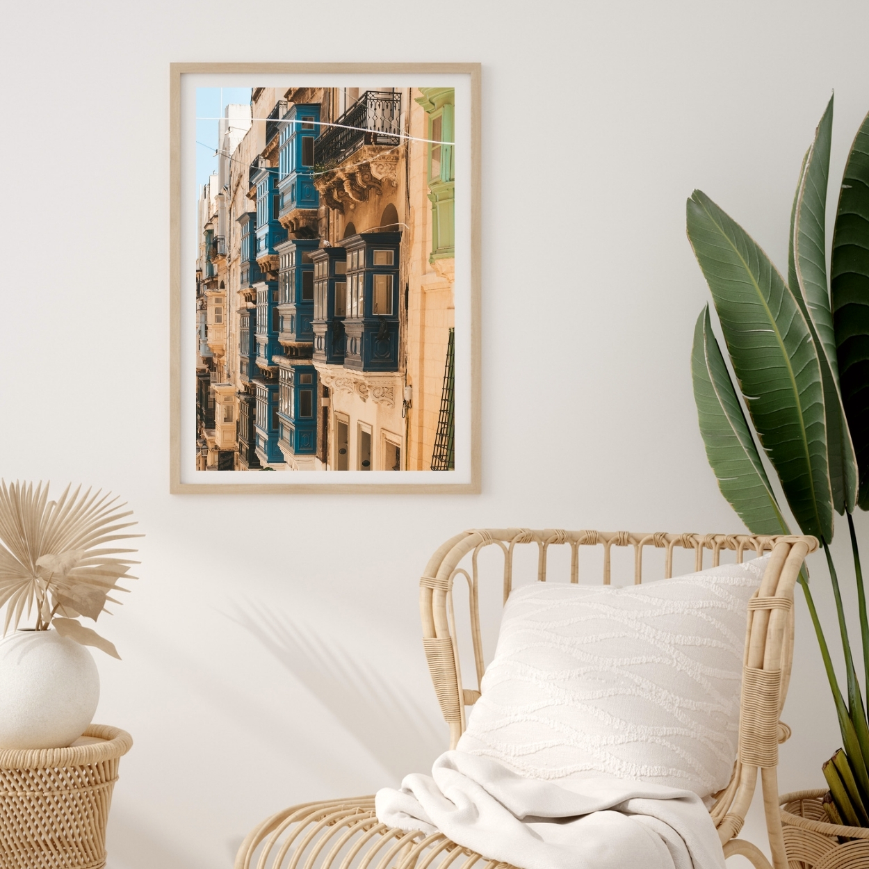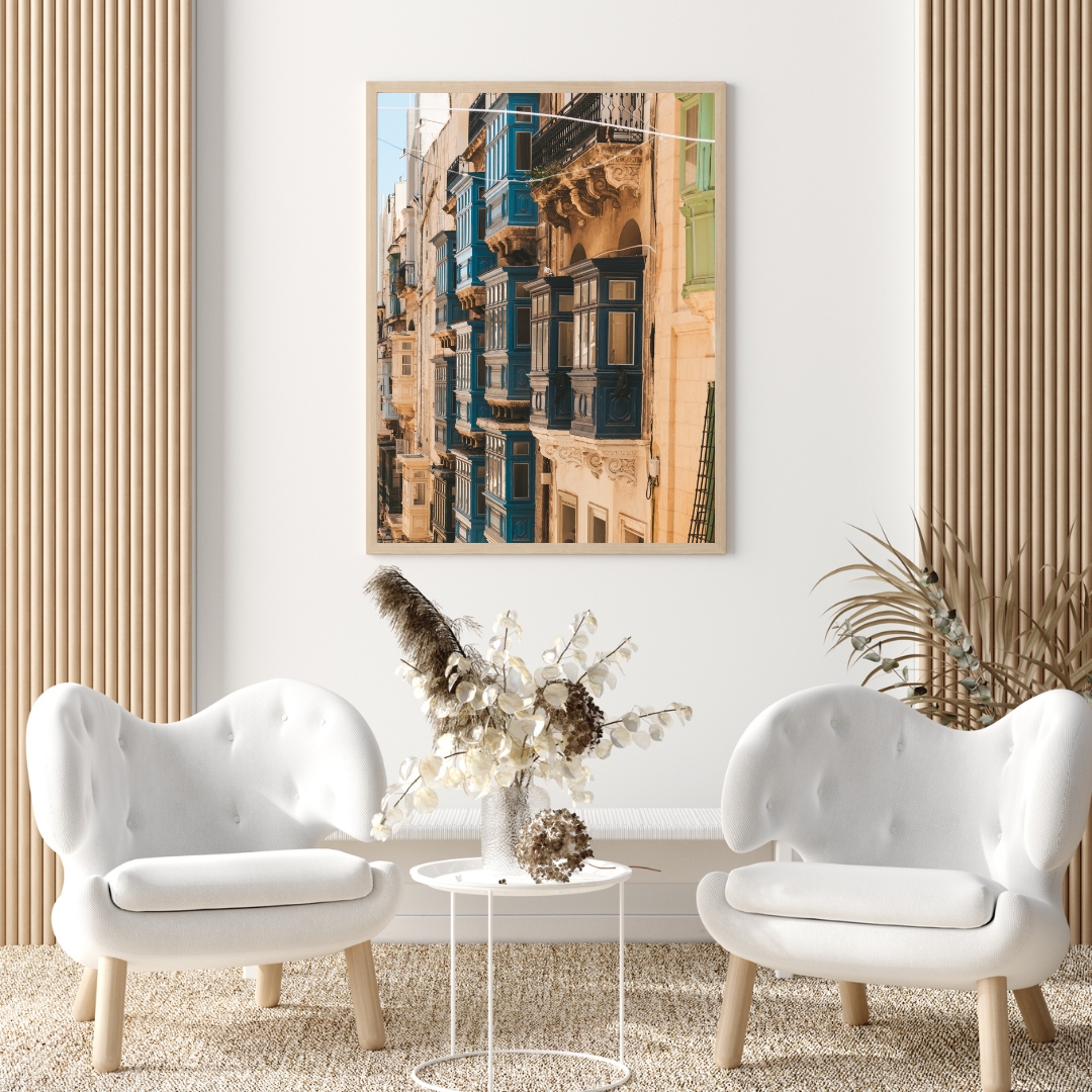Dieses Motiv zeigt bewusst ein besonderes architektonisches Detail und funktioniert gut als Ergänzung zu anderen Malta-Motiven. Falls du also ein echter Fan dieser wunderbaren kleinen Insel im Mittelmeer bist und dich für Architektur begeistert, ist dieses Wandbild eine tolle Bereicherung für dein Zuhause.